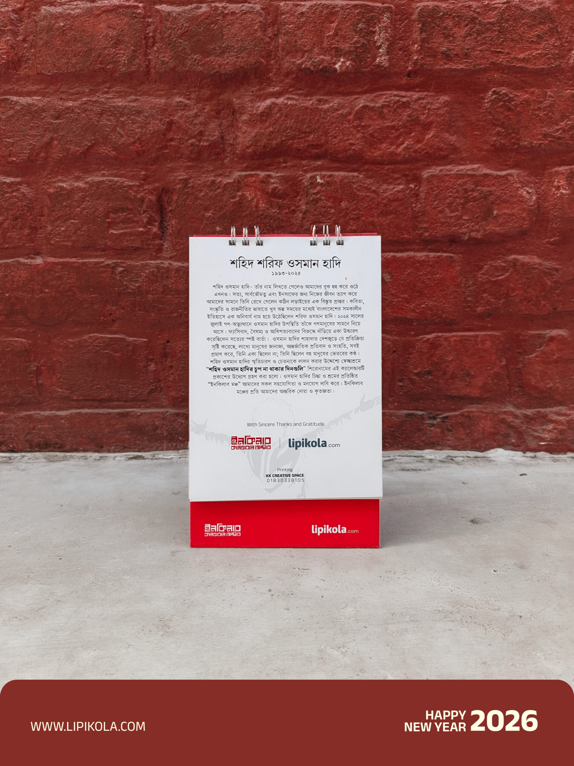 Lipikola proudly presents a desk calendar inspired by the powerful speeches of July leader Osman Hadi.
